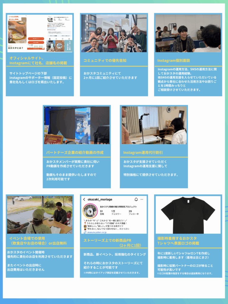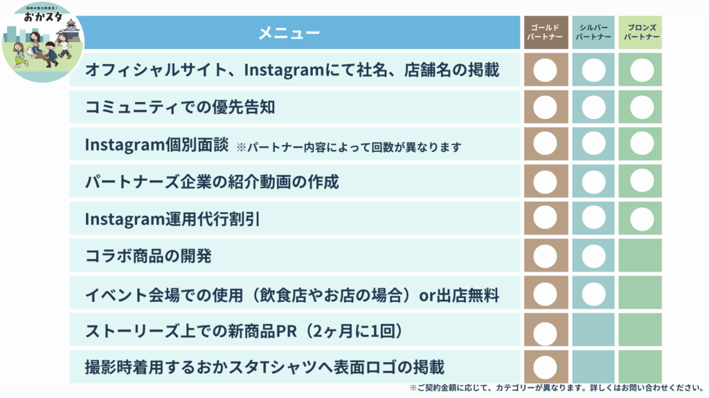 おかスタオフィシャルパートナーの共通メリットは下記の内容となります。
